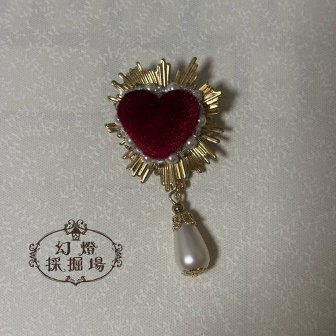 - <46004>淑女の心臓ブローチ 赤